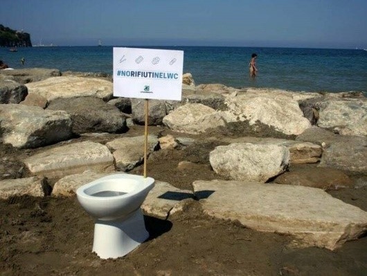 Salviette, assorbenti, tamponi, cotton-fioc, preservativi, medicinali e molti altri rifiuti vengono spesso gettati nel water, con effetti disastrosi sugli impianti di trattamento delle acque reflue e sull'ambiente,